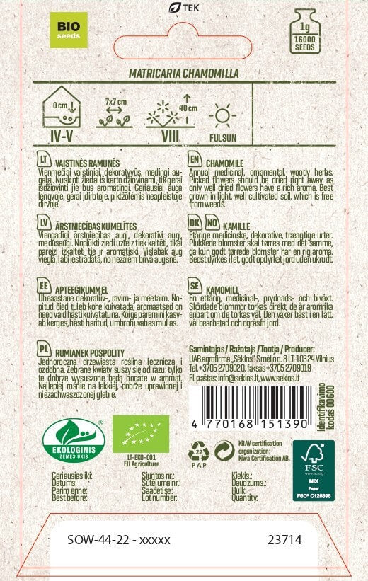 Annual medicinal, ornamental, woody and fragrant herbs. produces yellow and white basket flowers that can be dried and used for tea. The tea is said to have a cleansing and calming effect. Pick the flowers when they have just bloomed, best on sunny days and put them to dry directly in low heat -too high heat will turn them bitter.